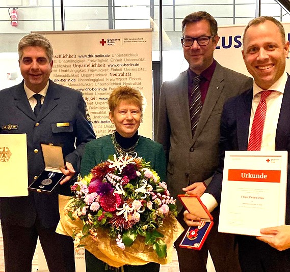 Die Landesverbände des Deutschen Roten Kreuzes und des Technischen Hilfswerks haben die ehemalige Vizepräsidentin des Deutschen Bundestages Petra Pau für ihr langjähriges ehrenamtliches Engagement zugunsten beider ausgezeichnet. Sie erhielt heute das Leistungsabzeichen in Gold des DRK und das Ehrenzeichen der Präsidentin des THW.