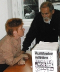 Im Wahllokal in Charlottenburg: Hier wählten am 21.9. MitbürgerInnen ohne deutsche Pass; Foto: Axel Hildebrandt21. 09. 2002, Berlin, letzter Wahlkampftag: