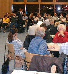 Rund 200 Interessenten waren der Einladung Brücken statt Gräben gefolgt, dabei Stefan Liebich (PDS-Landesvorsitzender) und Petra Pau (direkt gewählte MdB im Wahlkreis), auch Hedi Lüth (stellv. PDS-Vorsitzende). Ob wir im Bundestag etwas bewegen können, hängt auch von der Partei ab, so Petra Pau. Ab heute Nacht werden wir uns kümmern, versprach Heidi Lüth für den PDS-Vorstand.