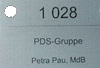 PDS-Gruppe, Petra Pau (MdB), steht auf dem Türschild. Aber der entsprechende Antrag der beiden PDS-Abgeordneten wurde vom zuständigen Ausschuss abgelehnt, sie erhalten keinen Gruppen-Status. Damit bleiben die Wirkungs-Möglichkeiten der beiden direkt gewählten Bundestags-Mitglieder deutlich schlechter, als die aller anderen Abgeordneten.
