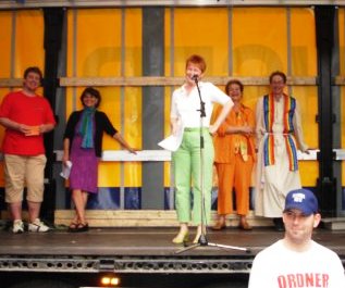 Lyra e.V. ist ein Berliner Verein zur Förderung der Integration für deutsche Aussiedler und Spätaussiedler aus dem Gebiet der ehemaligen Sowjetunion. Gemeinsam mit der Linkspartei.PDS veranstaltete er heute auf dem Armin-Platz in Marzahn ein Fest mit Musik, Tanz und Talkrunden. Zu den gefragten politischen Gesprächspartnern gehörte auch Petra Pau.
