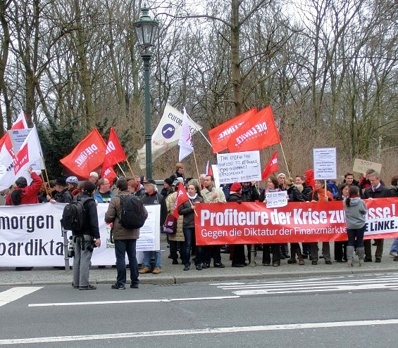 Linke aus mehreren europäischen Staaten bestimmten heute den Parlamentariertag der LINKEN. Außerdem wurden im Plenum die Ergebnisse aus den Workshops zusammengefasst. Während dieser zwei Tage zierte ein großes Transparent die CDU-Zentrale. Petra Pau besuchte außerdem den Landes-Flüchtlingsrat zum Fachgespräch.