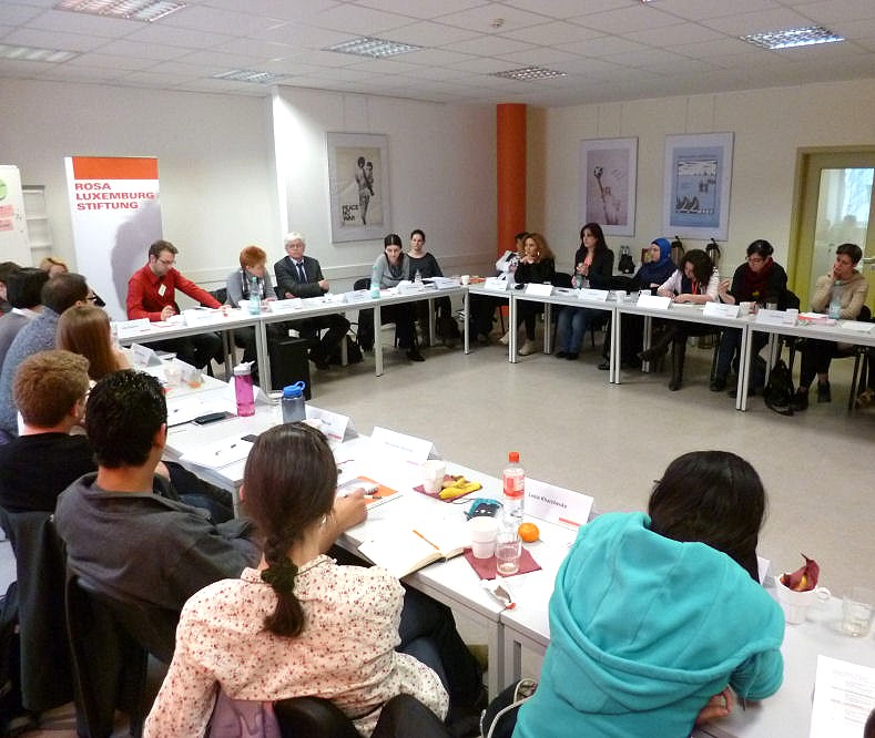 Stipendiaten aus dem IPS-Programm des Bundestages hatten gemeinsam mit der Rosa-Luxemburg-Stiftung (rls) Erinnerungsstätten aufgesucht. Dazu gehörten das Haus der Wannsee-Konferenz (hwk), das Jüdische Museum und die Mauergedenkstätte Bernauer Straße. Heute diskutierten sie mit Petra Pau und Dr. Wolfgang Kaiser (hwk) über Erinnerungskultur.