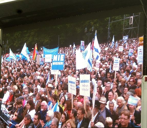 Am Brandenburger Tor demonstrierten heute Tausende von nah und fern unter dem Motto Steh auf! Nie wieder Judenhass! Aufgerufen dazu hatte angesichts zahlreicher antisemitischer Ausfälle der Zentralrat der Juden in Deutschland. Vordem wurde Petra Pau im Jüdischen Gymnasiums Moses Mendelssohn als verlässliche Freundin der Gemeinde begrüßt.