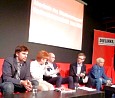 Abgründe des Staatsversagens - Verfassungsschutz und NSU war eine Diskussion im Theater Willy Praml überschrieben. Veranstalter waren die DIE LINKE und die Rosa-Luxemburg-Stiftung. Auf dem Podium: Dirk Laabs (Autor), Petra Pau (Linke), Alexander Kienzle (Anwalt), Christian Ströbele (Grüne), moderiert von Hanning Voigts (FR).