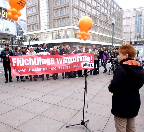 5 Minuten vor 12 Uhr fanden heute zahlreiche Aktionen zum Internationalen Tag gegen Rassismus statt. Petra Pau sprach auf dem Alexanderplatz zu Demonstranten und Passanten. Sie erinnerte an die Nazi-Mordserie der NSU-Bande und an die Ermittlungen der Behörden, die ebenfalls rassistische Züge trugen. Zugleich warb sie aktuell um Hilfe für Flüchtlinge.