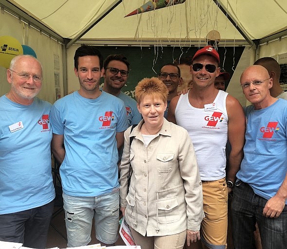 < Zum 40. Geburtstag ihrer Hellersdorfer Anlage Wachholderheide hatten die Kleingärtnerinnen und -gärtner heute Politikerinnen und Politiker der Bundes-, der Landes- und der Bezirksebene zum Disput geladen. Auch Petra Pau war dabei. Später wechselte sie nach Schöneberg. Dort findet an diesem Wochenende das bereits 24. schwul-lesbische Stadtfest statt.