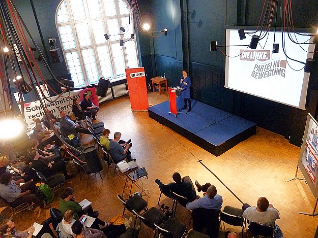 Auf dem WISTA-Gelände in Adlershof fand heute eine Tagung des Landesparteitages der Berliner Linkspartei statt. Petra Pau ist delegiert. Der Leitantrag zur Rückeroberung des Öffentlichen Raums wurde mit wenigen Änderungen angenommen. Zugleich distanzierte sich der Parteitag strikt von der zunehmenden Militarisierung der Politik, wie aktuell rund um den Krieg in Syrien.